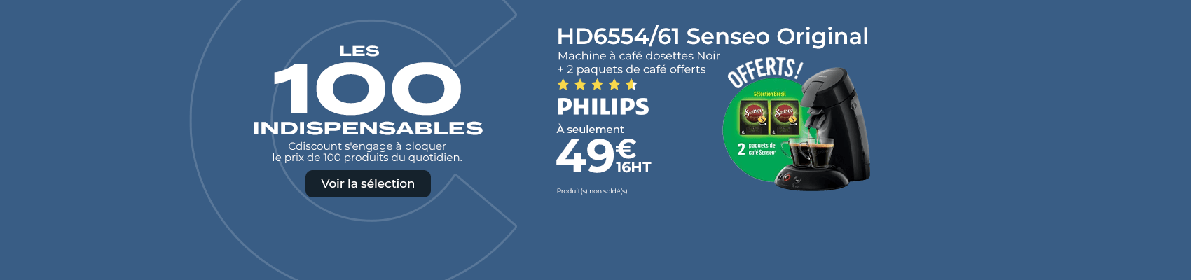 58€99 49€16 HTPHILIPS HD6554/61 Senseo Original - Machine à café dosettes Noir + 2 paquets de café offerts(2243)