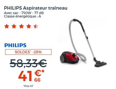 39€99 33€33 HTOCEANIC VC10RBAX2 Aspirateur traîneau sans sac - 700W - 78 dB - A - Rouge(2068)