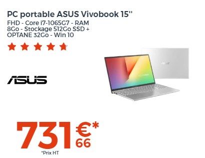 349€99 291€66 HT 399,00€ 332,50€HTVos avis comptent!PC Portable ASUS Vivobook E406MA-EK420TS 14" FHD - Intel N5030 - RAM 4Go - Stockage 128Go - NumPad - Win10 S - Office 1 an - AZERTY(1)40€ HT d'économie