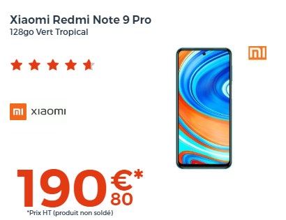 159€99 133€33 HT 399,99€ 333,33€HTXIAOMI Redmi Note 9 128Go Gris Nuit(79)200€ HT d'économie !